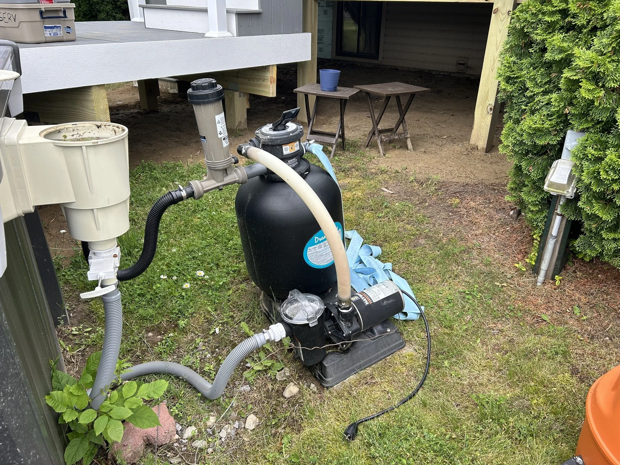 Before/After Filter Install old broken sand filter replaced with new sand filteralso a new filter pad and new pressure hose