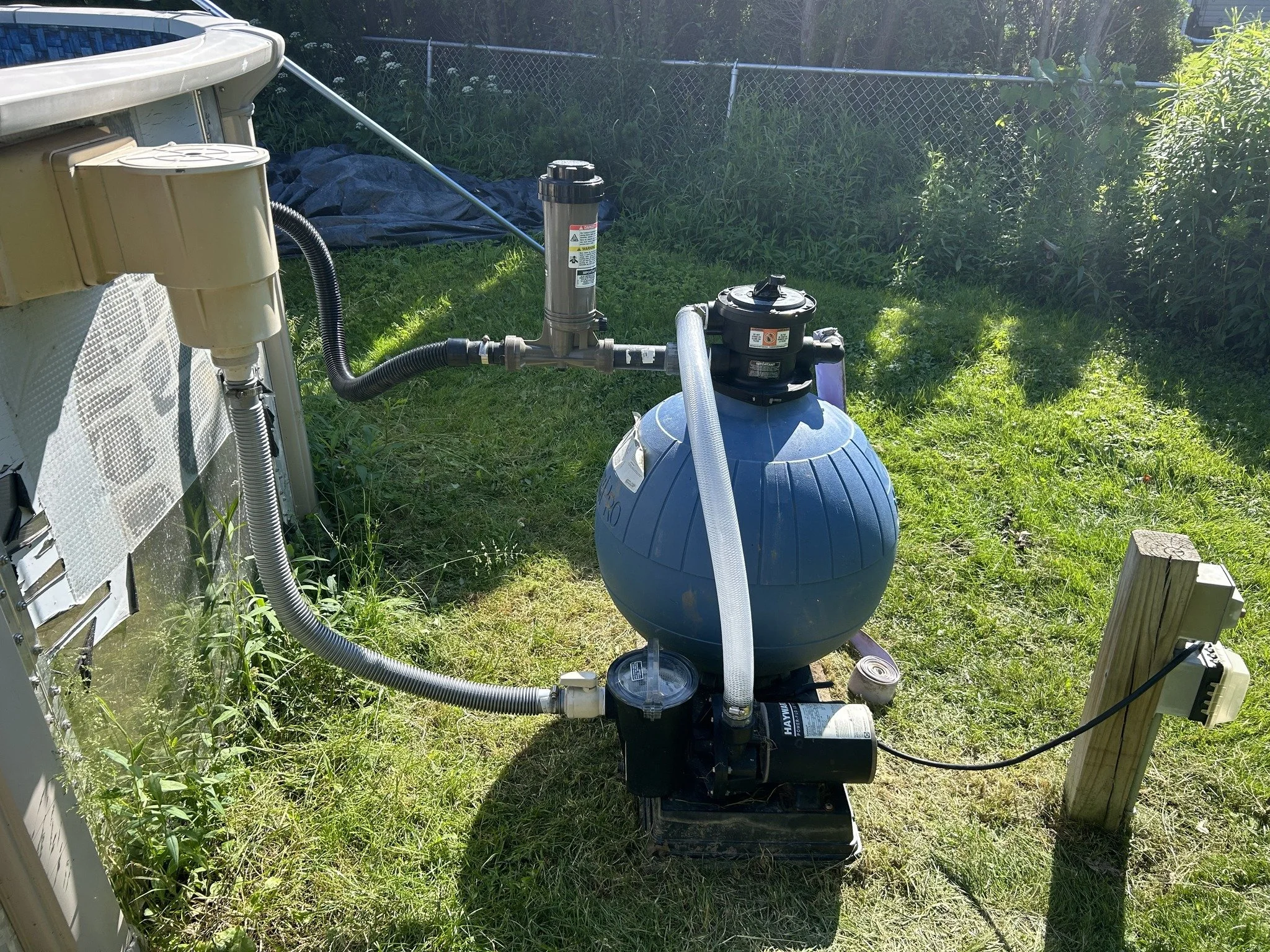 Before/After Filter Install old cartridge filter and rusty pump replaced with sand filter and new pump